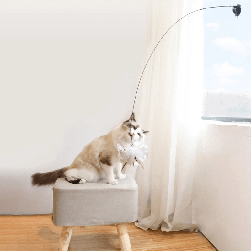 🔸Type ventouse : Vous pouvez le fixer au sol ou au mur, et le chat jouera avec. Vous pouvez séparer le bâton de la base, le tenir et jouer avec le chat.