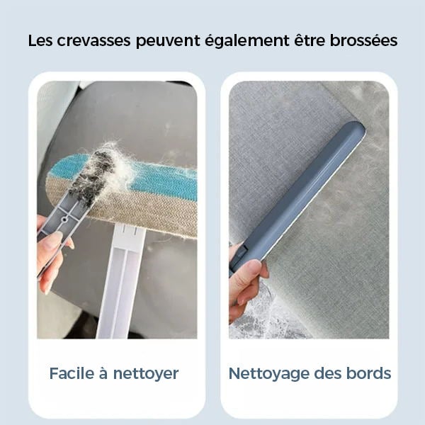 Cet outil de nettoyage polyvalent peut être utilisé sur la literie, les abat-jours, les sièges de voiture, les vêtements ou les tapis ! Grâce à ses micro-poils denses, il capte efficacement la saleté, les poils de chien ou de chat et les peluches sur toutes les surfaces textiles.
