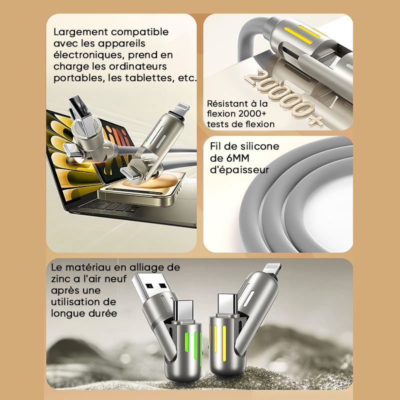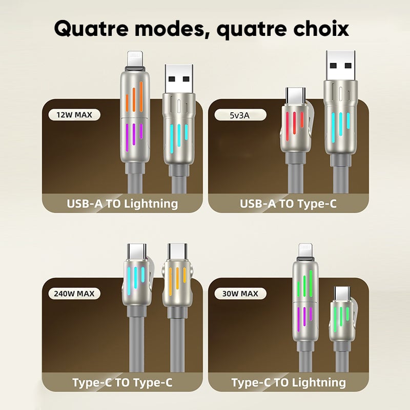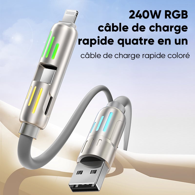 Chargez vos appareils plus rapidement que jamais avec le câble MFish USB C 4-en-1 240W.