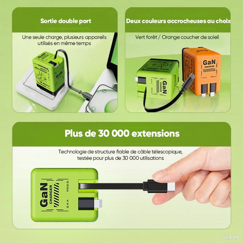 • 🌍 Compatibilité universelle – Compatible avec les appareils USB-C PD (MacBook, iPhone 15, Android, iPad, etc.).