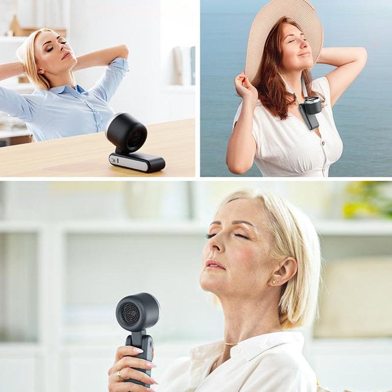 • Design 3-en-1 polyvalent - Utilisez-le comme ventilateur à main, ventilateur de cou ou ventilateur de bureau pour rester au frais en toutes circonstances. Que vous soyez à la maison, en déplacement ou en extérieur, ce ventilateur s’adapte à vos besoins.