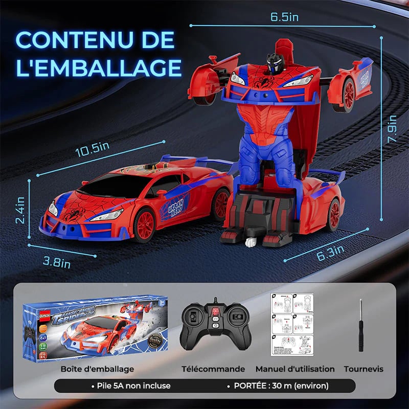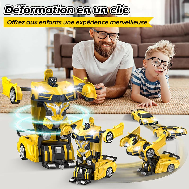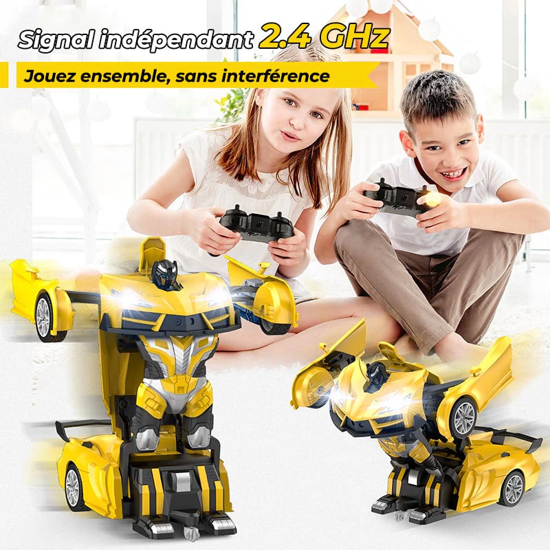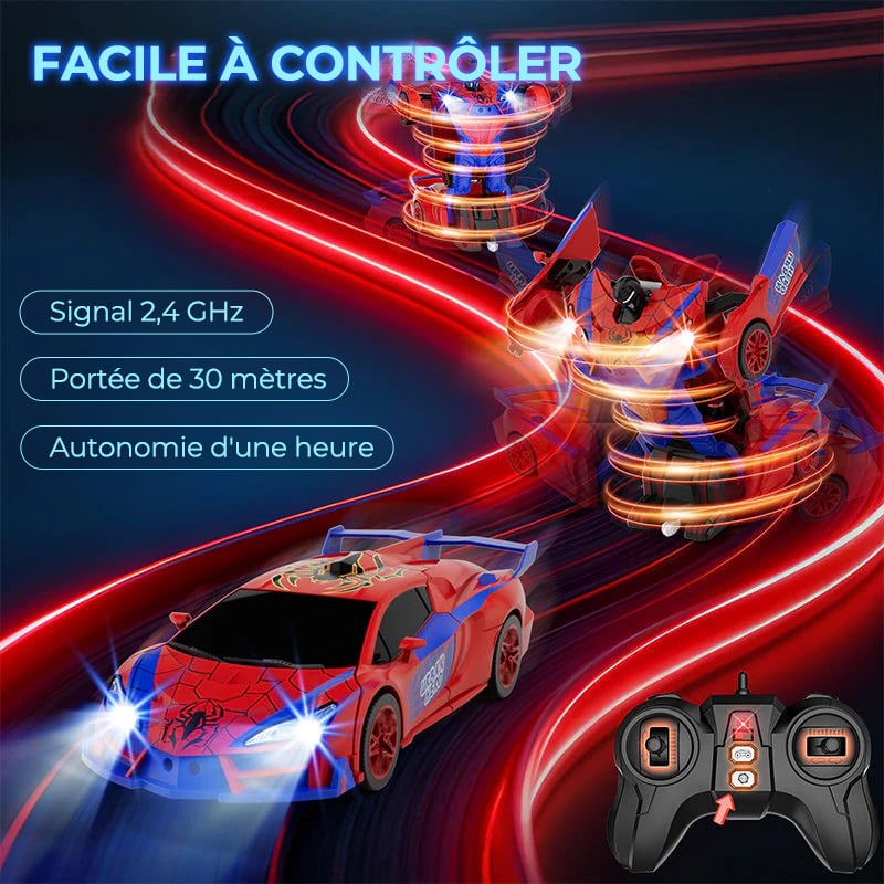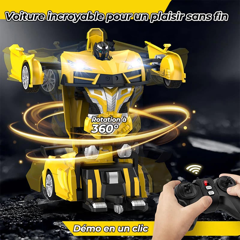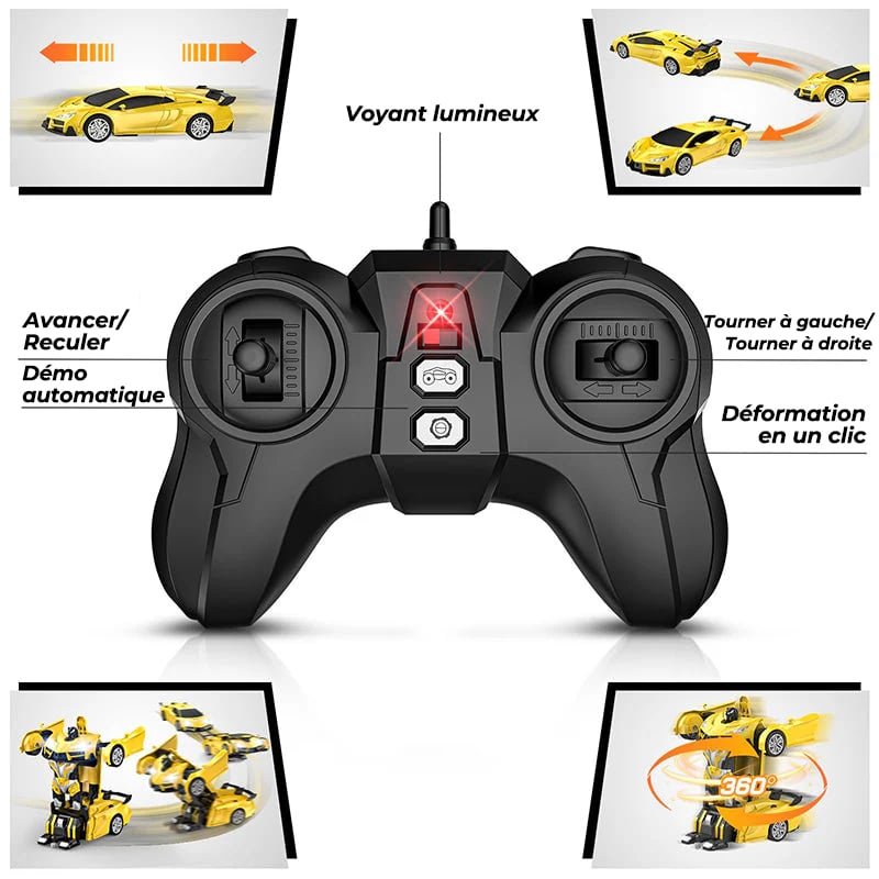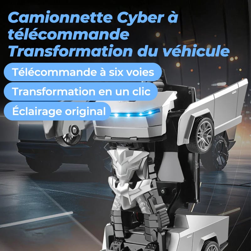 Jouet robot 2-en-1 + voiture télécommandée cyber : Cette voiture-jouet télécommandée se transforme automatiquement entre un camion et un robot, offrant aux enfants deux modes de jeu excitants en un. Non seulement le camion de jouet peut se déplacer, tourner à 360° et déraper, mais le robot peut aussi se déplacer et pivoter.