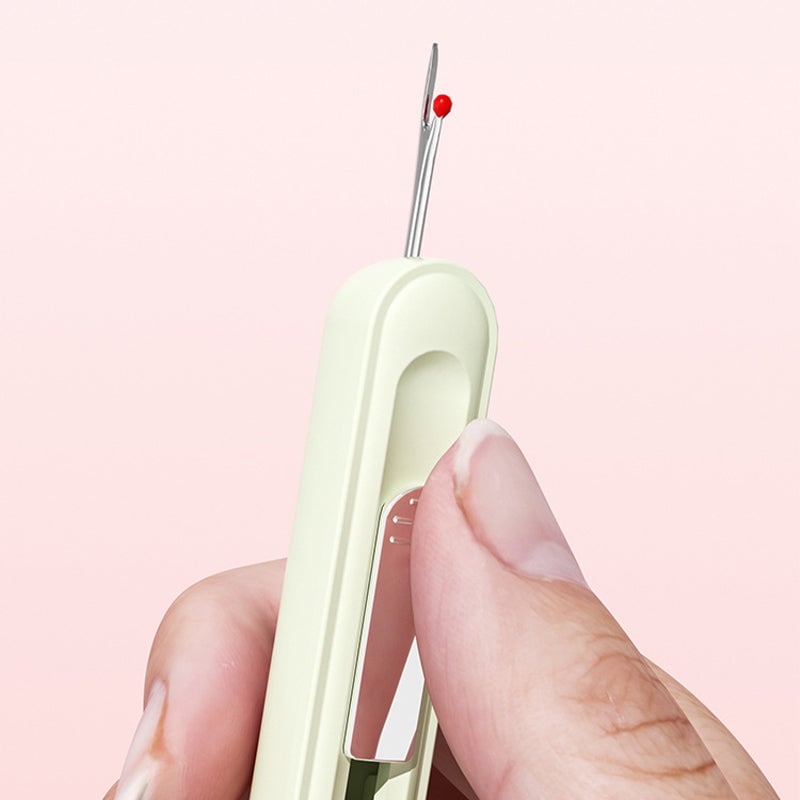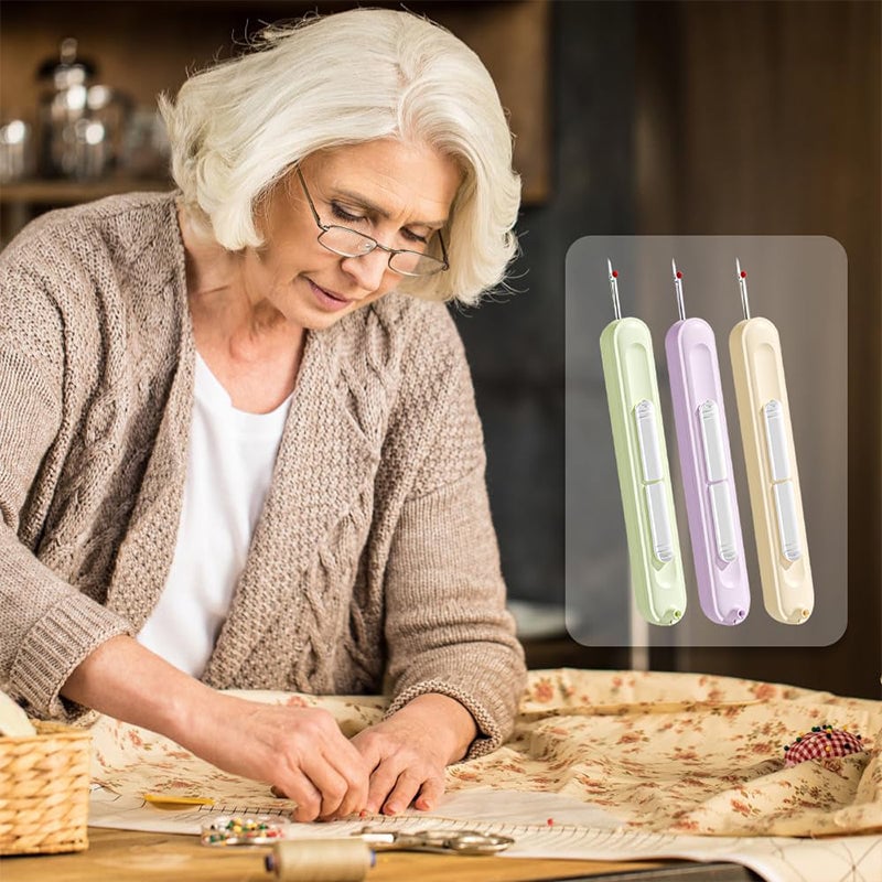 - Un seul appui pour enfilage, sans effort ni tracas. Fini les luttes avec le filage — il suffit d'appuyer et de commencer, idéal pour les personnes âgées.