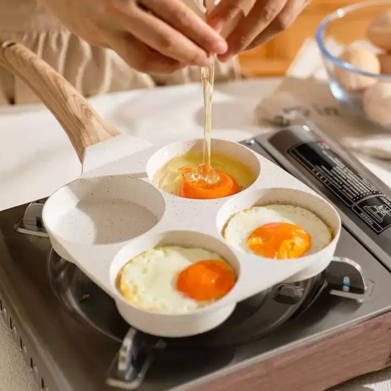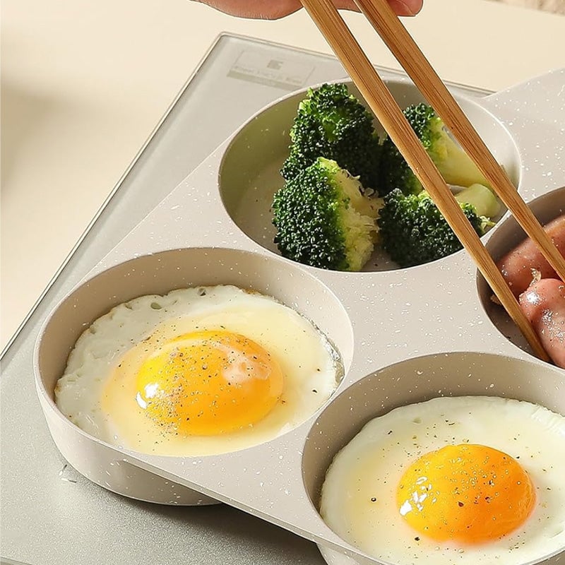Commencez votre journée de manière intelligente — préparez des petits-déjeuners rapides et délicieux facilement grâce à cette poêle antiadhésive 4-en-1 tout-en-un !