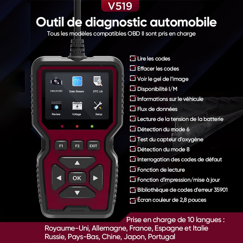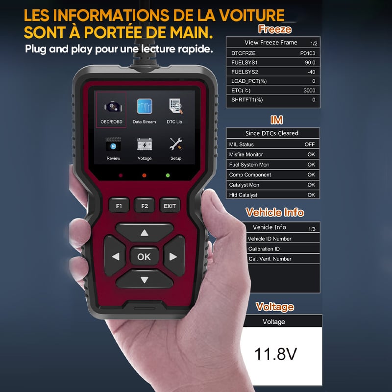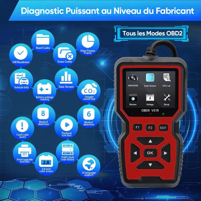 - Large compatibilité avec les véhicules: Fonctionne avec la plupart des véhicules compatibles avec le protocole OBD2, sans configuration supplémentaire.