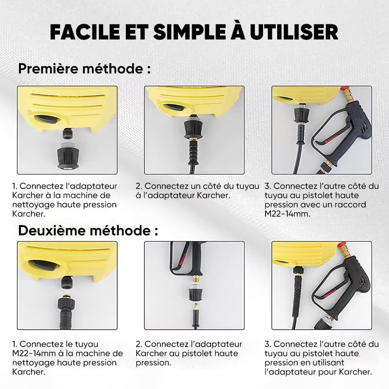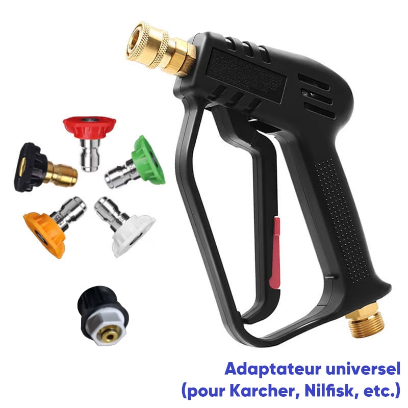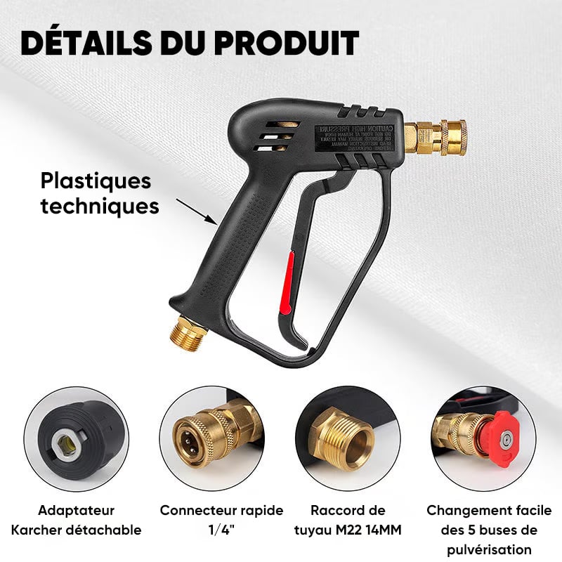 Pas d'expérience avec les nettoyeurs à haute pression ? Pas de problème ! Notre pistolet à haute pression est conçu pour être utilisé facilement par tout le monde. Sa poignée ergonomique assure une prise confortable, et son design léger le rend facile à contrôler.