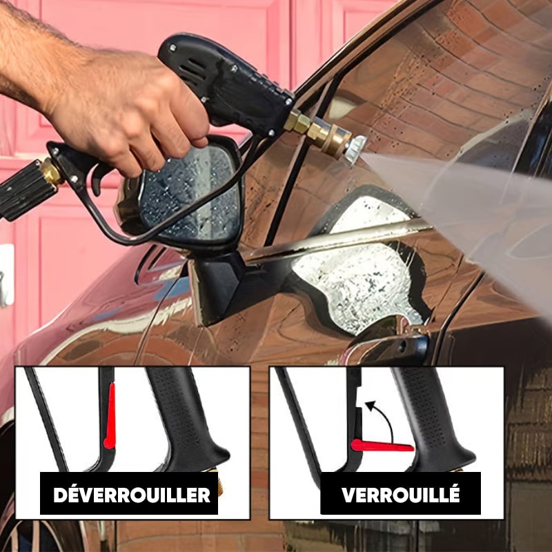 La sécurité avant tout ! Le pistolet à haute pression est équipé d'un verrouillage de sécurité qui empêche toute activation accidentelle, protégeant ainsi vous et vos proches de tout incident potentiel.