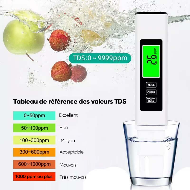 Vous cherchez un cadeau utile ? Le testeur TDS 4-en-1 est idéal pour les personnes soucieuses de leur santé, les nouveaux propriétaires ou les amateurs d'activités en plein air. Offrez à vos proches une eau propre et saine. 🎄✨