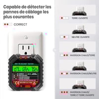 - Testeur de prise multifonction: Convient pour tester le câblage des prises, des circuits et des fiches afin de garantir des connexions appropriées et la conformité à la sécurité de la tension.